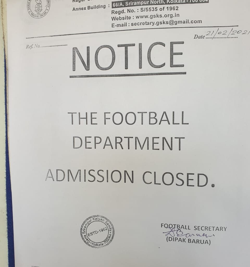 Notice for Football Department February 21, 2021 Games & SportsNoticeVisible NoticeFootball DepartmentAdmissions are closed until further notice. Previous Post Inviting to apply for Carrom Tournament on March, 2021 Next Post Notice for Swimming Pool New Session (April 21 – September 21) Related Posts Notice for Chess Departmentনোটিশ বিভাগ - দাবা দাবা প্রশিক্ষণ বিভাগের সকল শিক্ষার্থীদের জানানো যাচ্ছে যে, শিক্ষার্থী অপ্রতুলতার জন্য… Reopening of Yogasan DepartmentNotice The Yogasan Department will be reopened with effect from 02/03/2021. Interested candidates are requested… Notice for Swimming Students—: বিশেষ বিজ্ঞপ্তি :— বিভাগঃ— সুইমিং সমিতির সুইমিং বিভাগের সকল শিক্ষার্থীদের / অবিভাবকদের কাছে বিশেষ…